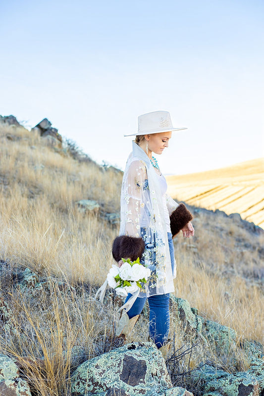 Big Sky Flowered Embroidered Bison Trimmed Duster