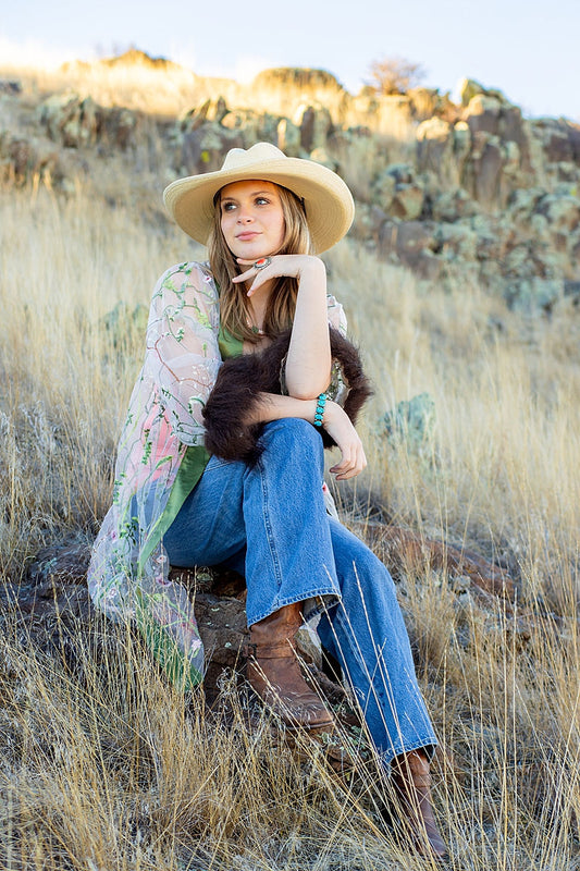 Wildflower Embroidered Bison Trimmed Duster