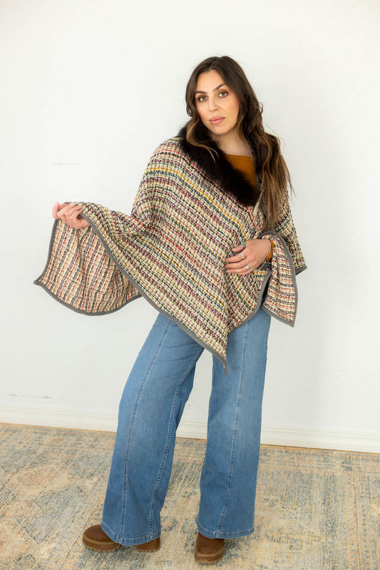 Fall Leaves with Bison Trimmed Wool Cape SOLD