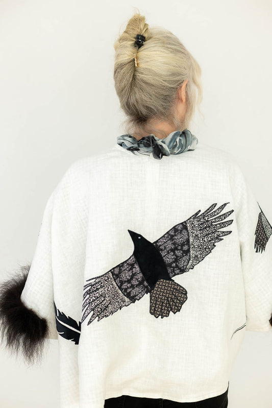 Jennie Montana sees a wool cape and coat as a canvas. Montana’s promise of wilderness and wildlife draws people to live in her landscape. We have our favorites, from our declared spirit animals to the seasonal return of the red-winged blackbird, announcing spring has arrived. Jennie's coats and capes are statement pieces that boldly declare affection for the natural world we live in. All the design work is original.
