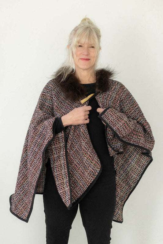 Hummingbirds in Flight Bison Trimmed Wool Cape