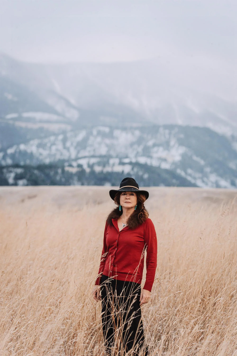 Raised in Southern California, the great-granddaughter of early Montana settlers, Jennie returned to Montana in 1981, and embraced life in big sky country. A fly-fishing guide, author, conservationist, and speaker for over 30 years, she kept her affection for the fiber arts on hold until it couldn't be contained. In 2004, her Swedish mother-in-law, Eva, taught her to knit, and it was game on! She jokingly says, “I guess anything to do with sticks and string gets my attention.” She found the process of creating yarn from raw fiber fascinating, from shearing, to carding, to milling, and she had to ask, “What about bison? Do they have anything to knit with?” After research, study, and a lot of questions, she approached a bison rancher, and one day he generously dropped a raw, newly harvested hide, onto her driveway. From there she taught herself how to stretch hides, shear the fiber, make bison yarn, and tan the hide for trim in her fashions.