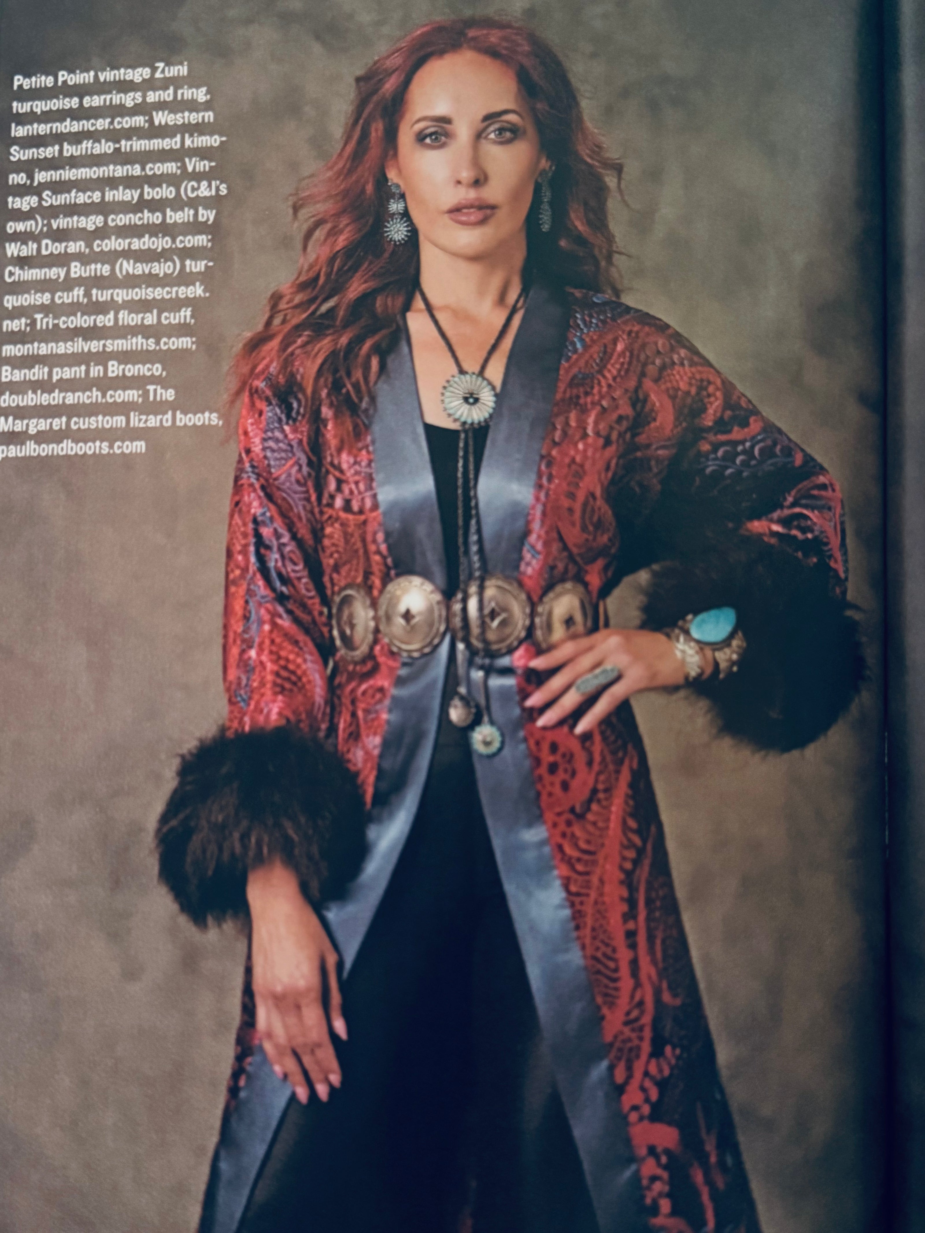 Jennie Montana has designed unique fashions using bison since 2006. Seeing the potential to blend bison fiber into yarn, she started her work with the fibers of locally ranched bison, alpaca, and sheep. Gathering the raw materials, she worked with mills to create luxurious blends for knitting and knitwear. Next, she was taking orders for mittens, hats, and custom sweaters! Handling the bison hides from ranch pick up, to stretching and shearing, she taught herself how to select the best pieces to tan and trim her one-of-a-kind appliquéd coats, capes, and fashions featuring Montana wildlife from birds of prey to wildflowers. Jennie Montana's designs are owned by collectors throughout the United States, Canada, and Europe.