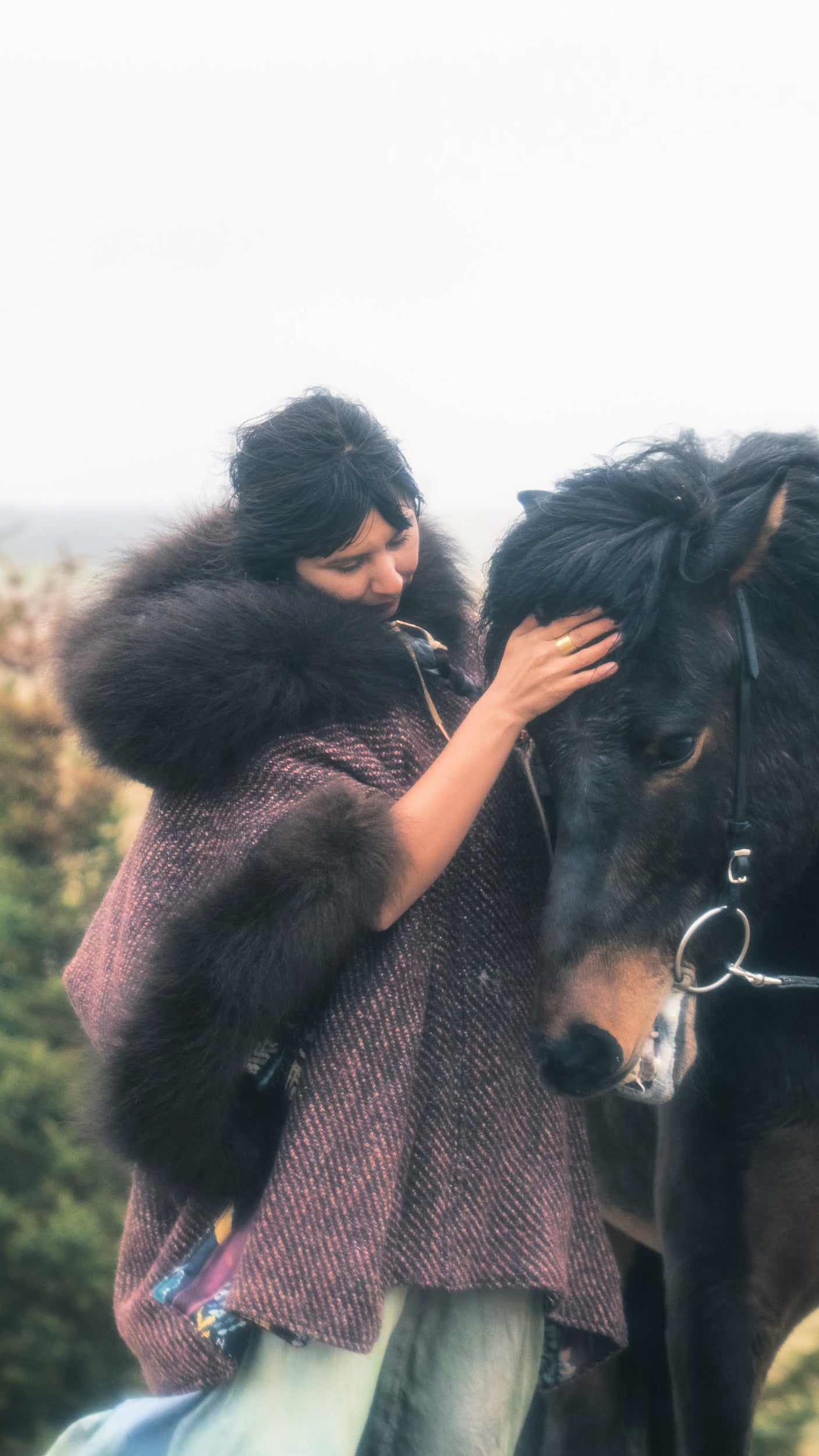 Memories of Eva Gate's Montana Huckleberry jam at the breakfast table, combined with Jennie's untamable nature, inspired the creation of this warm, wonderful bison cape. Woven wool in blacks and deep purples hits the low, dark notes, and then a crescendo of jazzy lining in complementary colors hits the high, bright notes. No one saw that coming!